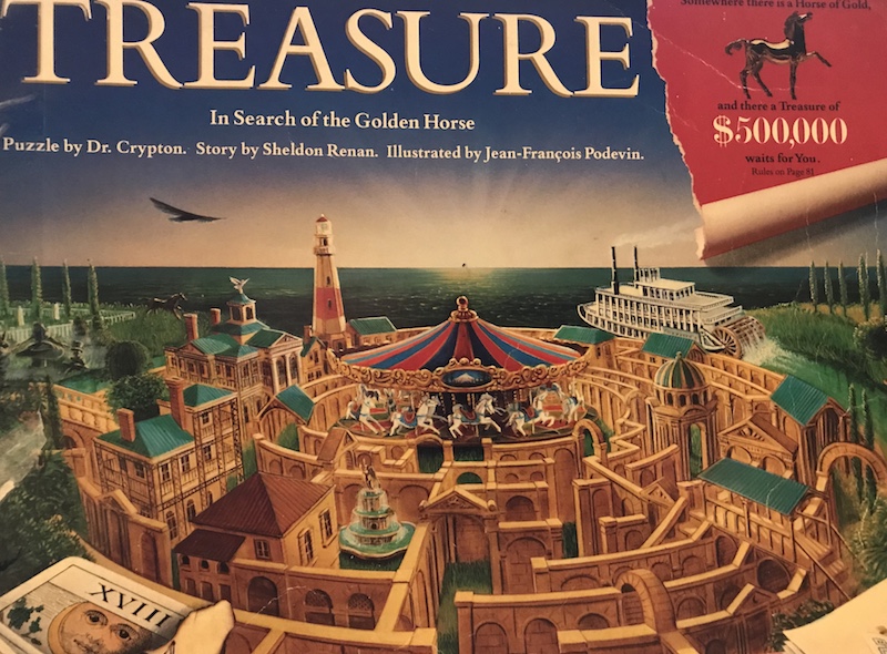I have posted a number of pages on the treasure hunt TREASURE, which ran for 5 years (1984-1989). As the full solution was never published, I am sharing some work that I have done on the subject, after a pause of a few decades. Follow this link to start: