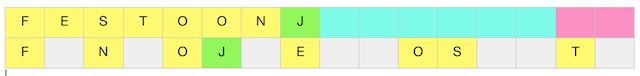 The second requires only one letter, represented by the square. But this letter, a J, is split between two different pages: one image is cut out of the other in the shape of a state.