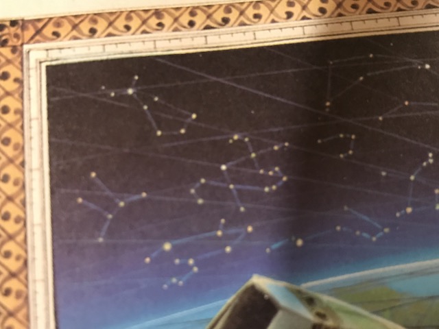 Read in page order and transformed to our alphabet, this forms the word FESTOON. Note that page 40 has two strange constellations in the shape of symbol X, each deciphered as O.