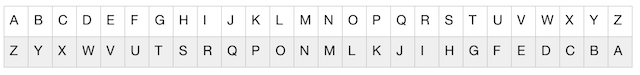 Clearly, the difference between these views has to do with the licence plates. The one moving away (VCER) is the one of interest. The other one (MLGGS) is not. Again, we have important information hidden by an apparent simple cipher. The Castenada/Boone solution solves the combination MLGGS/VCER with an Atbash cipher, which involves reversing the alphabet.