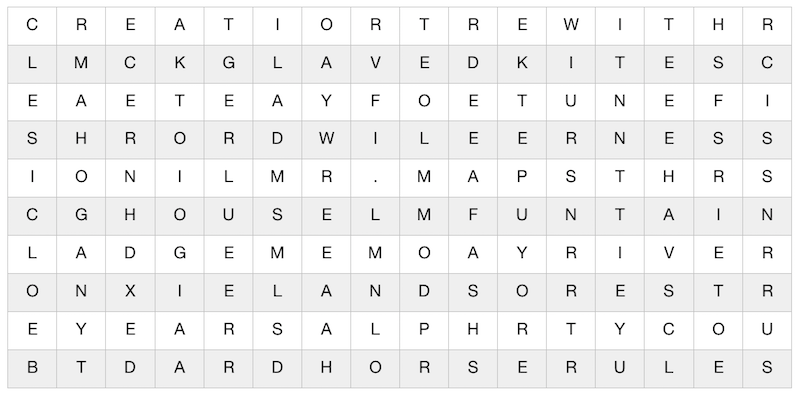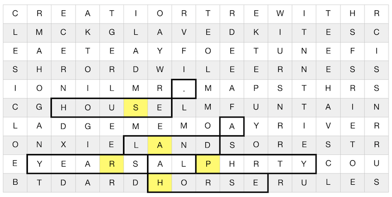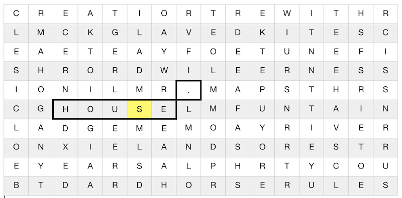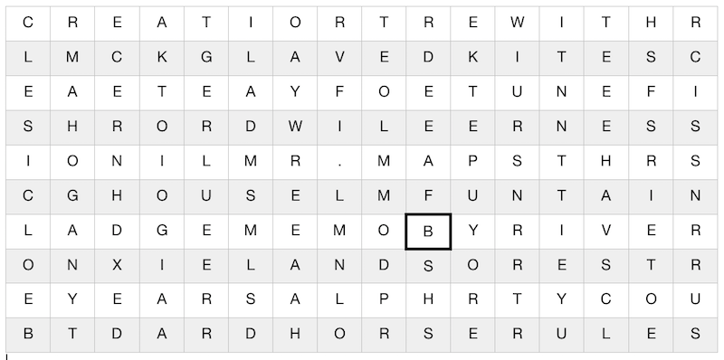 This was the status of the grid of letters at the end of chapter 6 (FISH).