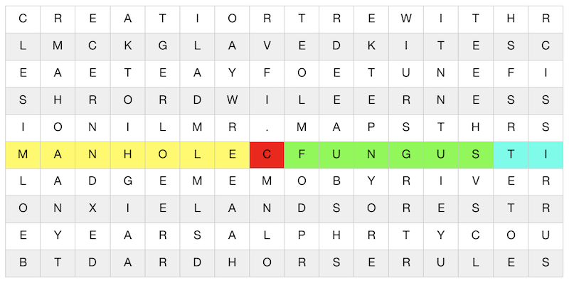 We must of course keep in mind that MANHOLE and FUNGUS may after all be important. Incredibly, there is a way to use these two clues to get to the location at Tennessee Pass. But here we have to be cautious with our interpretation, since we know the location in advance. Here it goes anyway:
